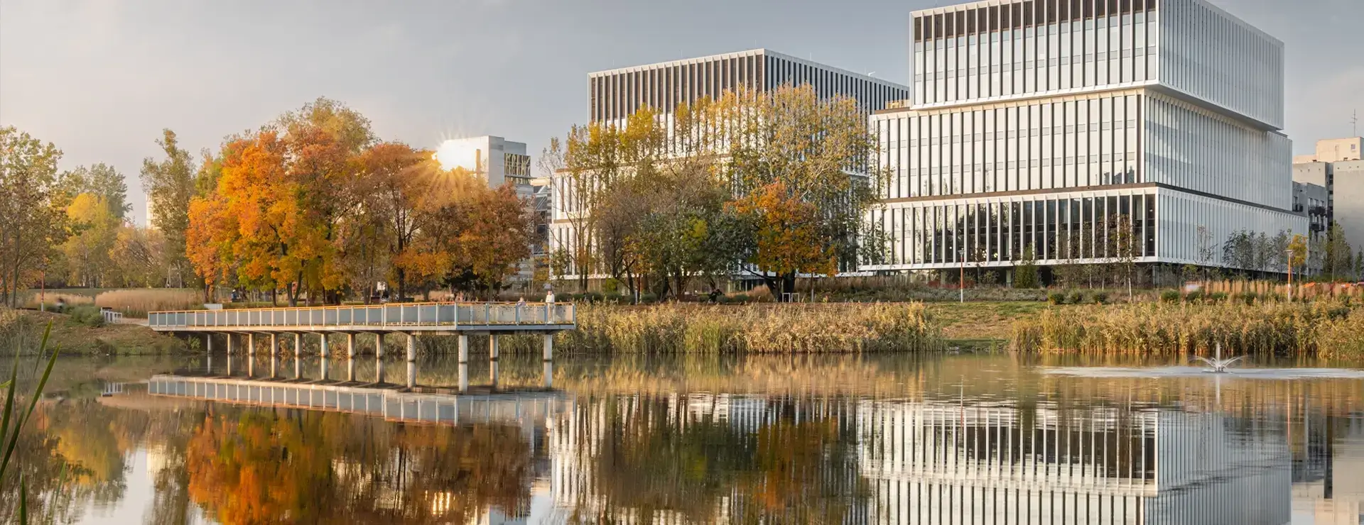 To je další příklad budovy, u niž hliníková fasádní konstrukce s velkoplošnými skly zajišťuje velmi moderní vzhled. Je zároveň šetrná k životnímu prostředí: nejlepším důkazem je získání ocenění Green Building Award pro nejlepší ekologický projekt.