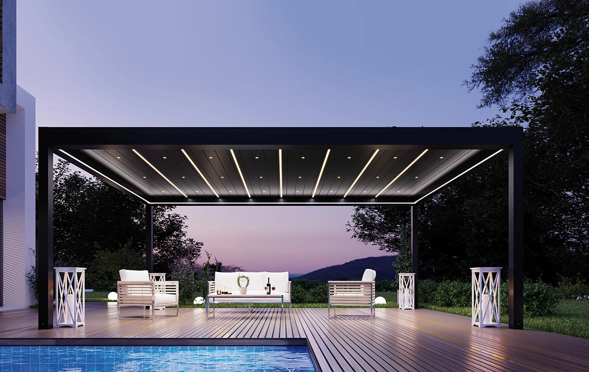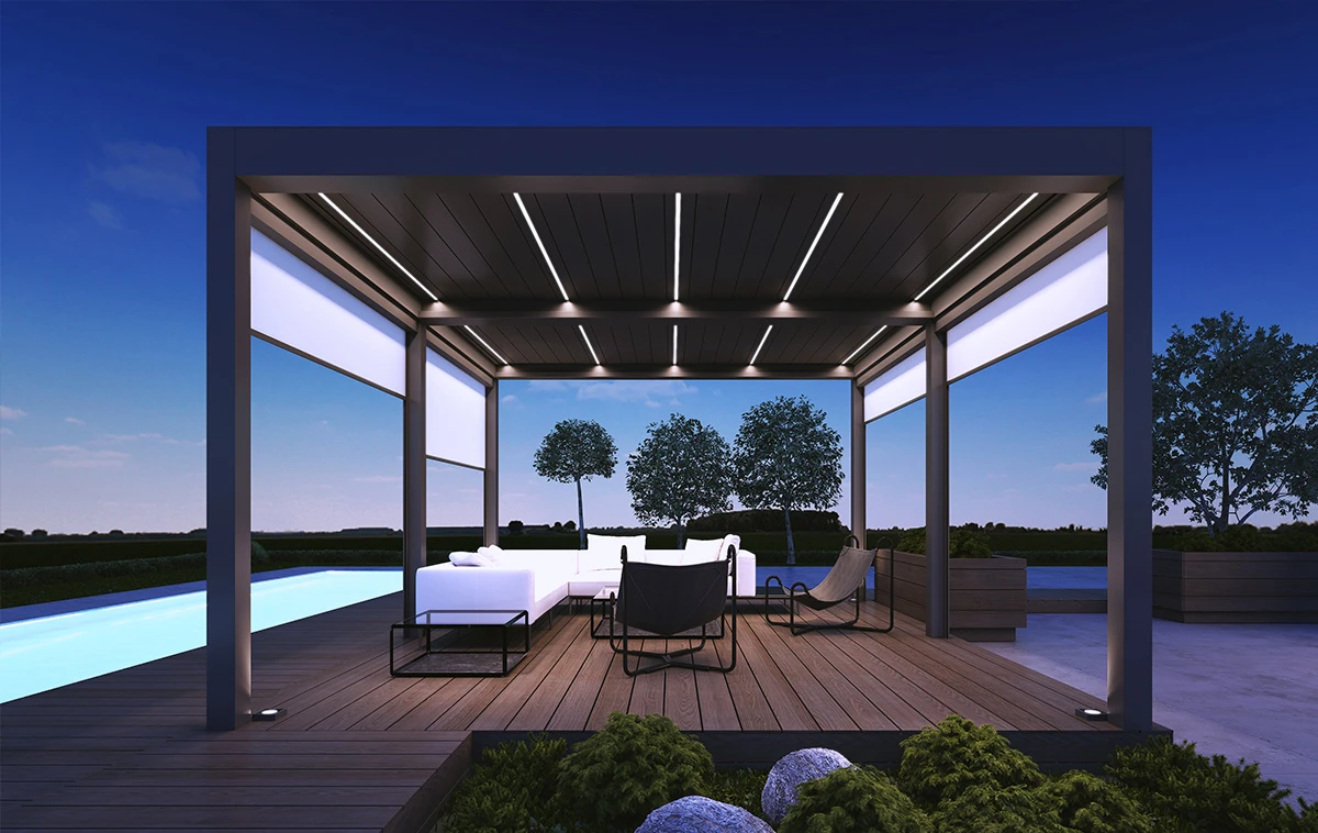 Výrobek se osvědčí nejen u rodinných domů jako součást terasové nebo zahradní zástavby, ale také u komerčních objektů, kde je moderním a praktickým prvkem zastřešení letních zahrádek v kavárnách nebo restauracích. Díky možnosti použití bočních zástěn nebo posuvných skleněných panelů lze pergolu používat bez ohledu na převládající povětrnostní podmínky.