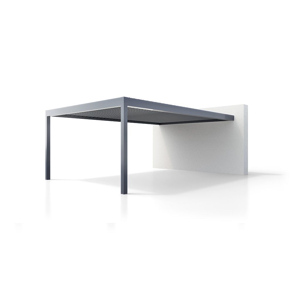 Konstrukce je tvořena extrudovanými hliníkovými profily, které mají vysokou pevnost. Sloupy o průřezu 140 mm zaručují výjimečnou stabilitu. Díky tomu můžeme nabídnout jedny z největších maximálních rozměrů na trhu pergol. Sloupy a krokve jsou spojeny pomocí spojek typu C a L. V kombinaci se speciálními stahovacími kolíky je zajištěna tuhost celé konstrukce a estetické provedení bez viditelných spojů. Střechu pergoly tvoří otočné lamely, které se naklápí v širokém rozsahu od 0 do 135° a to za pomocí skrytého motoru. Lamely mají speciální těsnění, které chrání proti dešťové vodě a odvodňovací systém umístěný ve sloupech umožňuje efektivní odvedení vody pomocí žlabů a svodů umístěných ve sloupech do dešťové kanalizace.