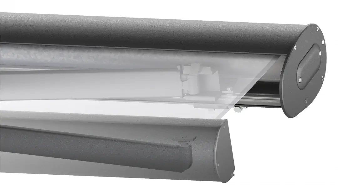 Die Markisenkassette lässt sich vollständig schließen, was das Tuch vor widrigen Witterungsbedingungen schützt.