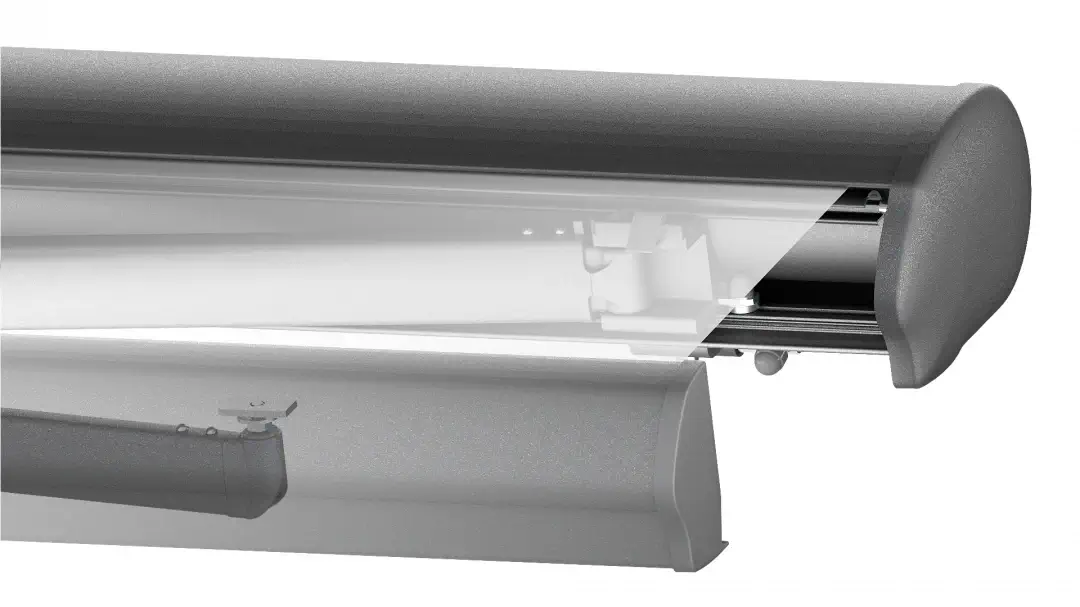 Die Markisenkassette lässt sich vollständig schließen, was das Tuch vor widrigen Witterungsbedingungen schützt.