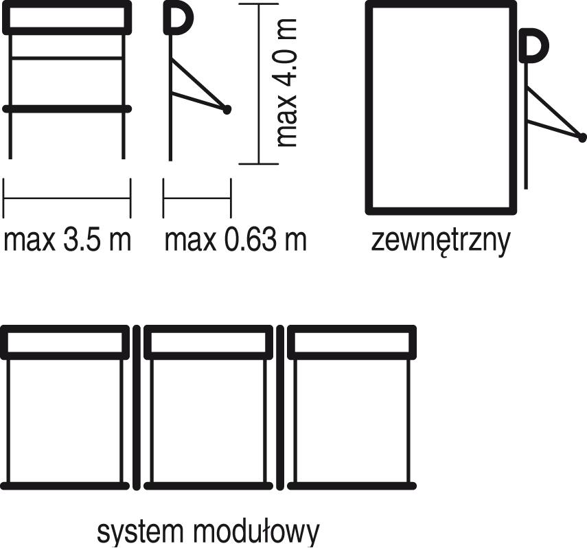 Die Verwendung dieses Produkttyps bietet die Möglichkeit, den Raum zu beschatten und damit die Temperatur im Inneren zu senken. Als Refleksol schützt es den Innenraum vor Sonneneinstrahlung und sorgt durch die Öffnung des Markisenteils auch für Tageslicht. Die Form der ovalen Kassette gleicht dem System Refleksol R103.