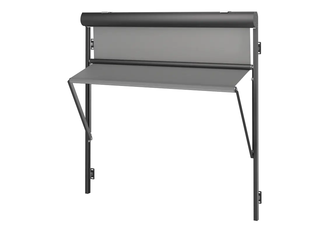 Die Markisolette bietet neben der Funktion der vertikalen Beschattung in beliebiger Position auch die Möglichkeit, die Stellung und Neigung des Markisenteils einzustellen. Je nach Tageszeit und Sonneneinstrahlung entscheiden wir, wie viel Sonnenlicht wir in den Raum lassen.