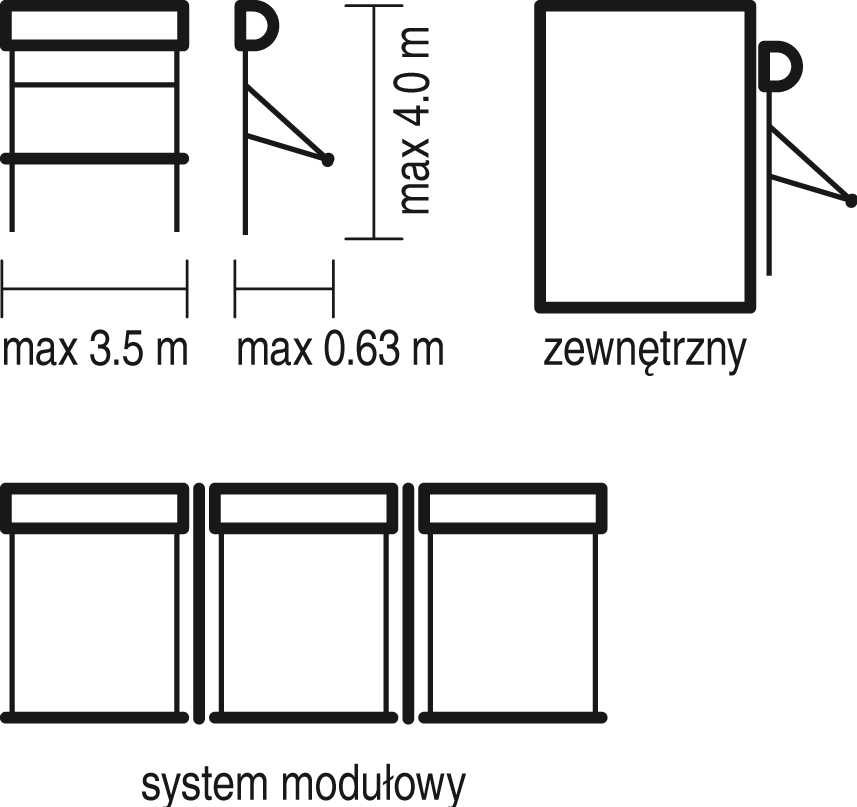 Das rechteckige Design der Kassette fügt sich aufgrund seiner Geometrie in das minimalistische Design ein. Das System kann sowohl an Wänden und Fassaden als auch in Fensternischen montiert werden. Es ist nur mit Elektroantrieb verfügbar.