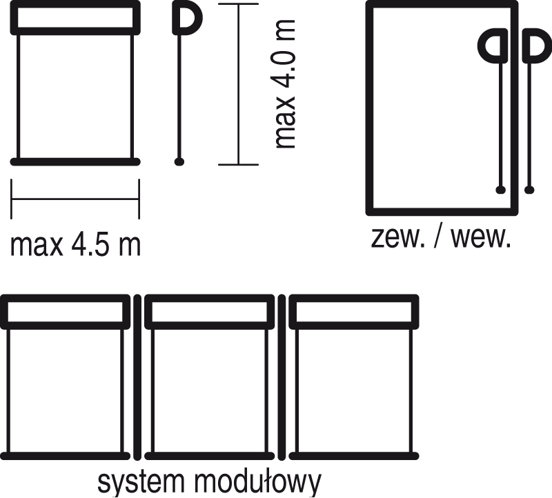 Das System R 103 ist ein externes Refleksolsystem, dessen solide Konstruktion die Ausführung von Einzelsystemen mit großen Abmessungen (bis zu 4,5 Meter Breite) ermöglicht.