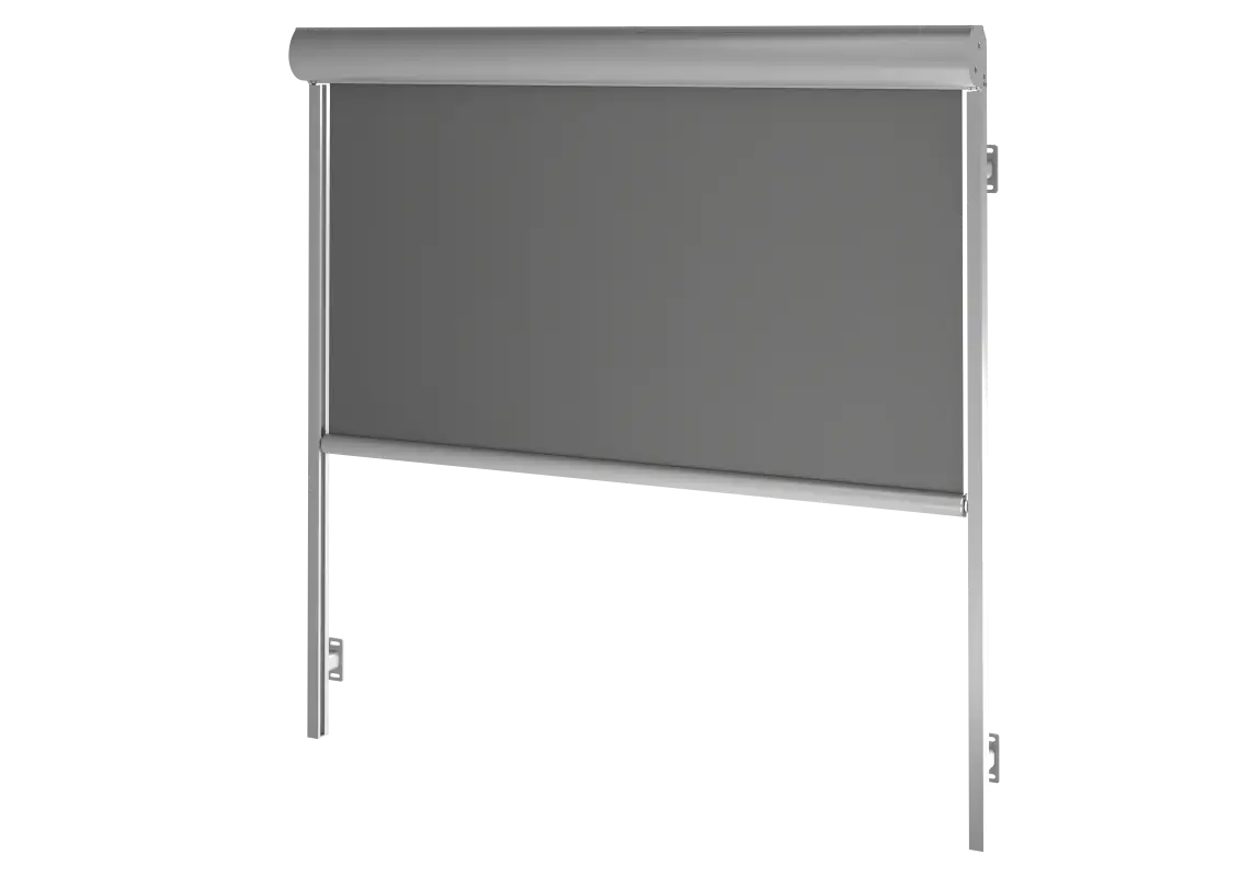 Um die Windwiderstands-fähigkeit des Systems zu erhöhen, kann das System mit speziellen Windschutz-Profilen ausgestattet werden, die die Verformung des Stoffes durch Wind reduzieren. Dies ist nur bei Systemen mit Führungs-schienen möglich.