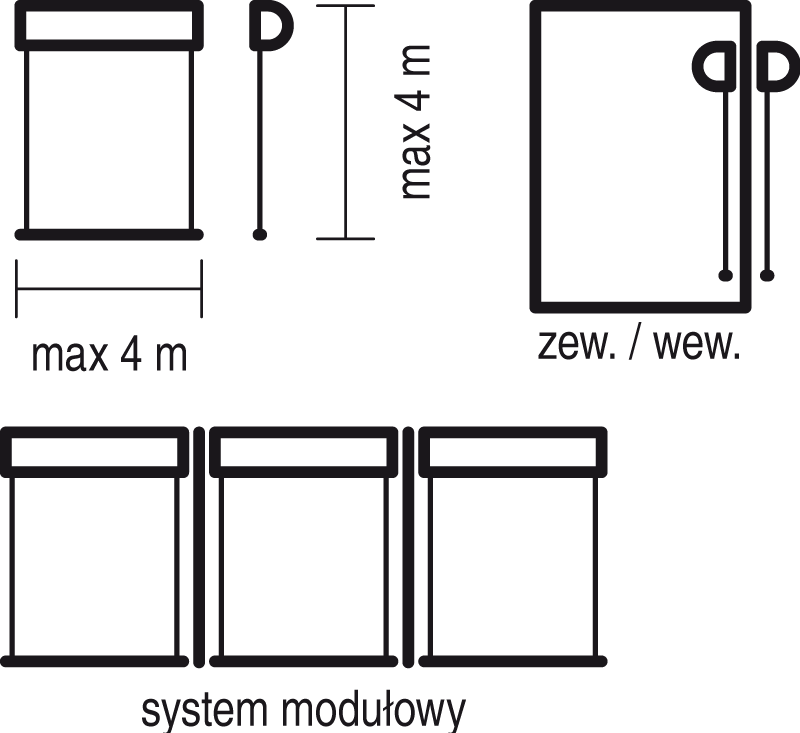 Beide Elemente können in jeder Farbe aus der RAL-Palette beschichtet werden. Je nach Fassadenform kann das Refleksol in der Nische oder an der Gebäudefassade montiert werden. Die Revision auf der Kassettenvorderseite ist leicht zugänglich, was für Installations- und Wartungsarbeiten wichtig ist. Die maximale Breite eines einzelnen Moduls beträgt 4 m. Dieses System kann optional mit speziellen Anti-Wind-Profilen ausgestattet werden, die den Windwiderstand des Stoffes erhöhen und die Verformung des Materials verringern.