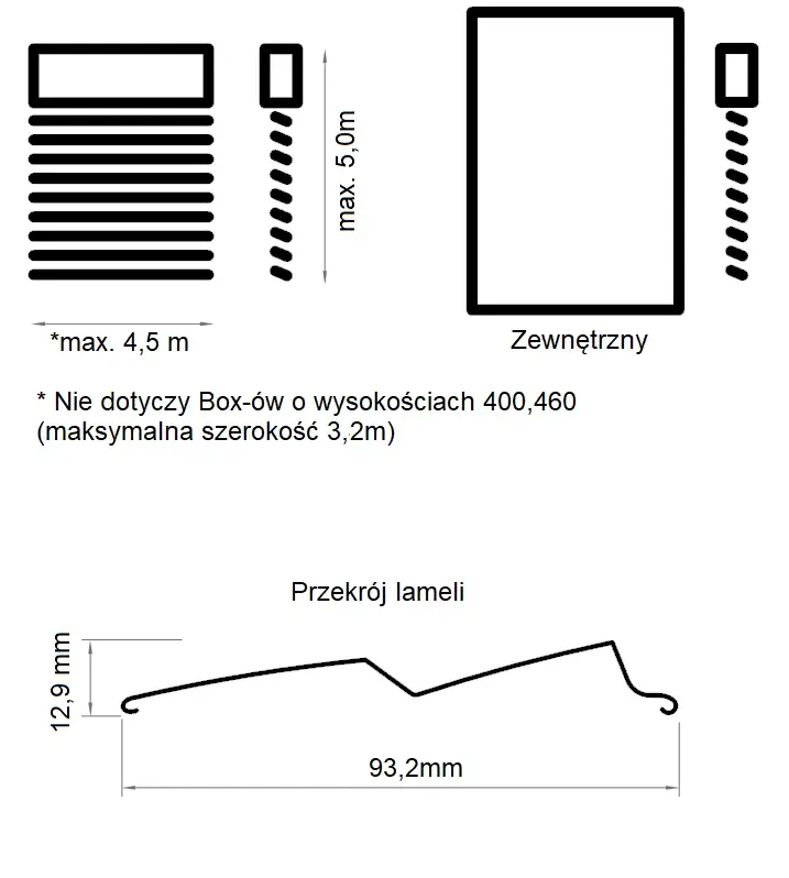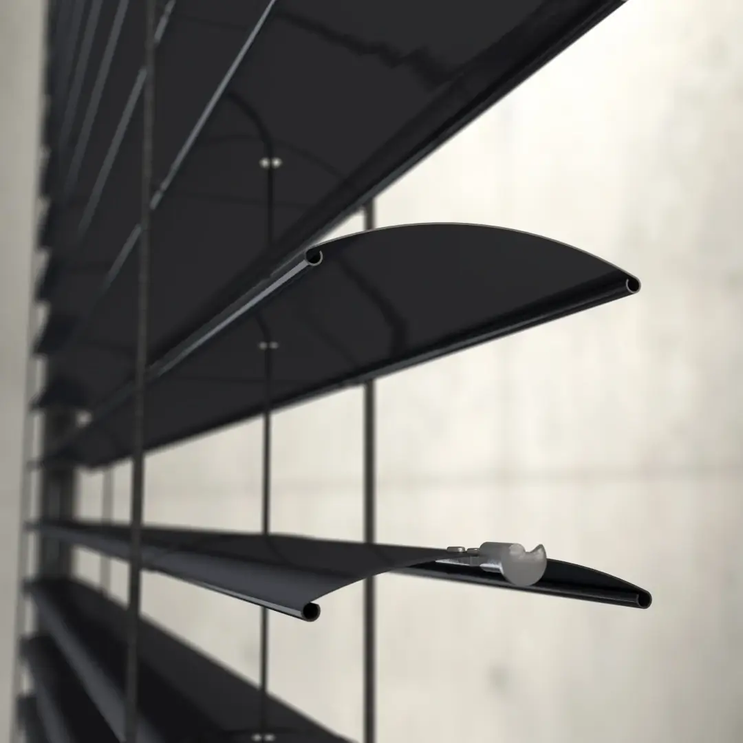 Die Jalousiekästen haben die Form einer Box, deren Vorderseite verputzt werden kann, wodurch das System an der Gebäudefassade vollständig unsichtbar ist. Die Form der Lamellen und die Möglichkeit einer nahezu vollständigen Verdunkelung machen SkyFlow BOX Edge Box zu einem der am häufigsten gewählten Fassadenjalousiesysteme.