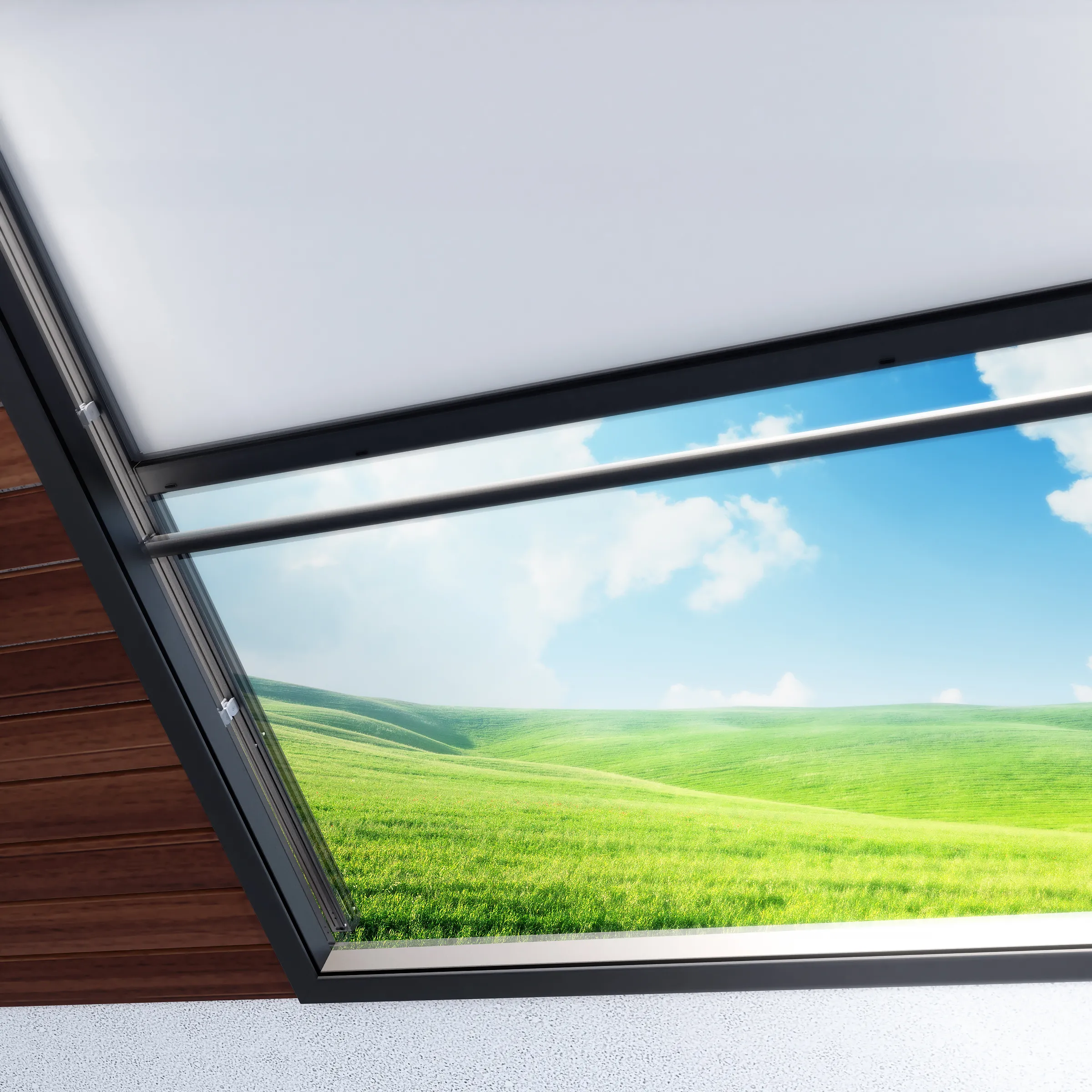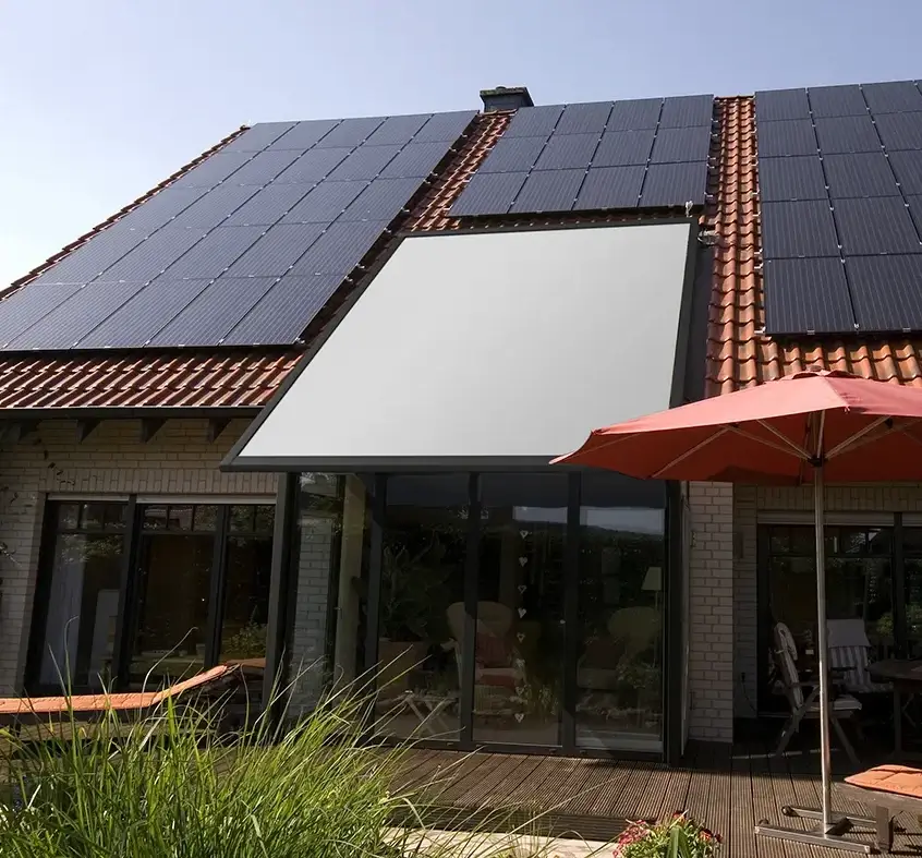 Die Veranda V ist ein Sonnenschutzsystem zur Beschattung von Oberlichtern, verglasten Dachflächen und Wintergärten.