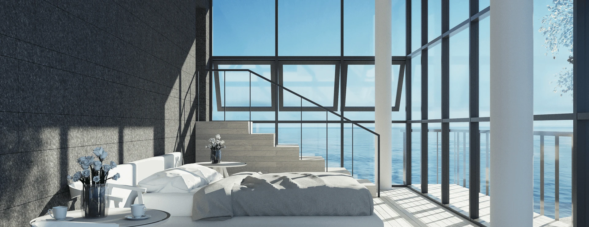 Compared to other materials, aluminium constructions allow for much larger windows. In this way, a panoramic glazing effect can be achieved, bringing more natural light into the interior and visually enlarging the space.