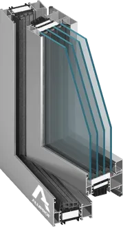 Lift and slide balcony door with enhanced thermal insulation