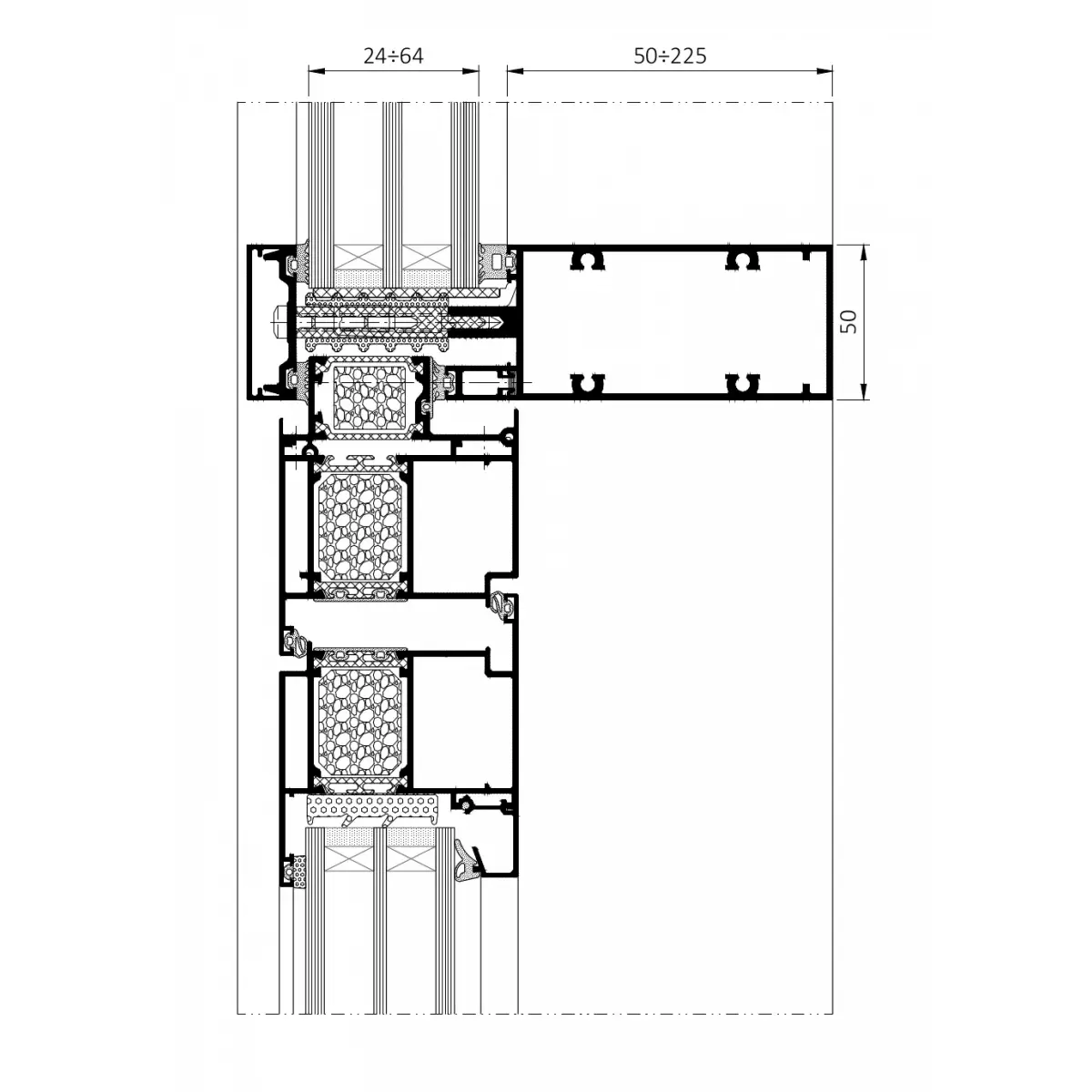 ALUPROF MB-MM50N pysty- ja vaakaprofiili julkisivujärjestelmä on innovatiivinen "pysty-pysty" konfiguraatiossa suunniteltu rakenne, joka täyttää nykyaikaisten julkisivujärjestelmien asettamat tiukat vaatimukset. Se on suunniteltu erityisesti Skandinavian markkinoille ja erottuu ainutlaatuisilla arkkitehtonisilla, rakenteellisilla ja toiminnallisilla ominaisuuksillaan, asettaen uuden standardin alalle. Sen erinomainen lämpötehokkuus mahdollistaa energiatehokkuuteen keskittyvien rakennusprojektien toteuttamisen.