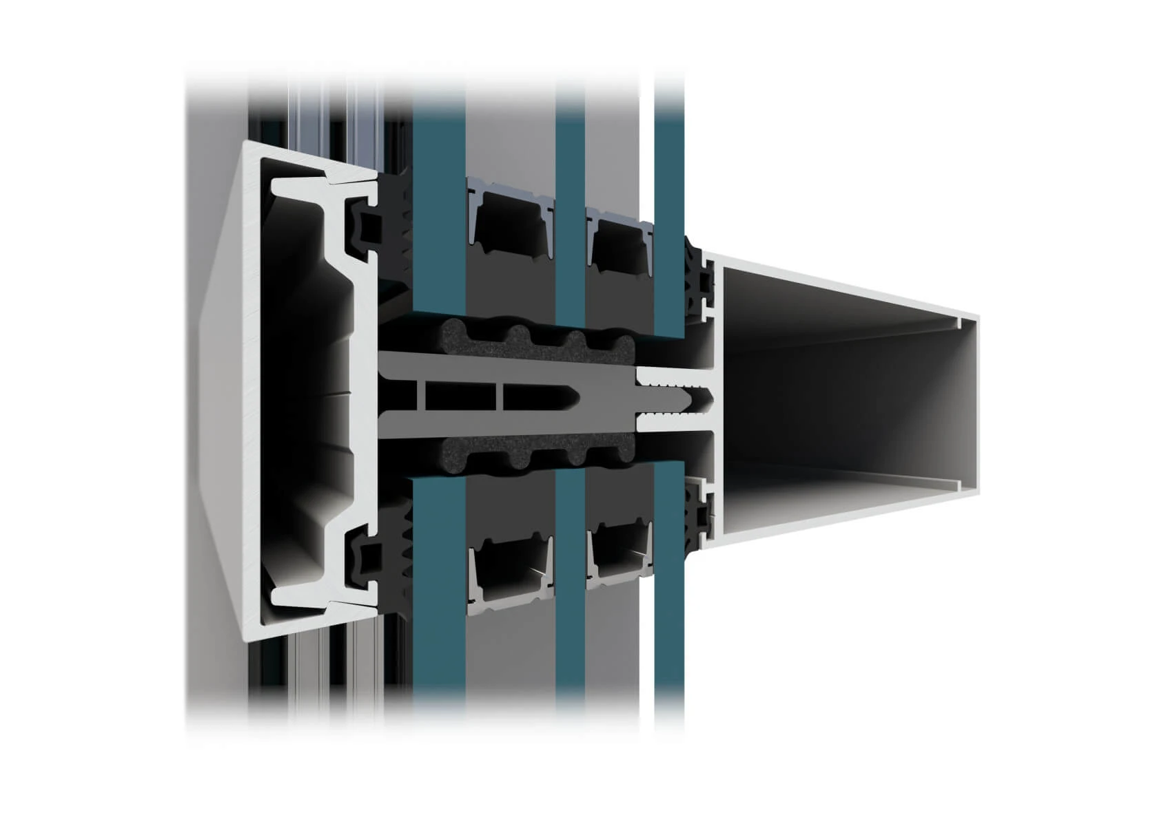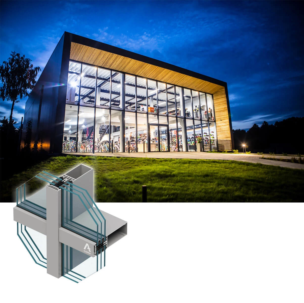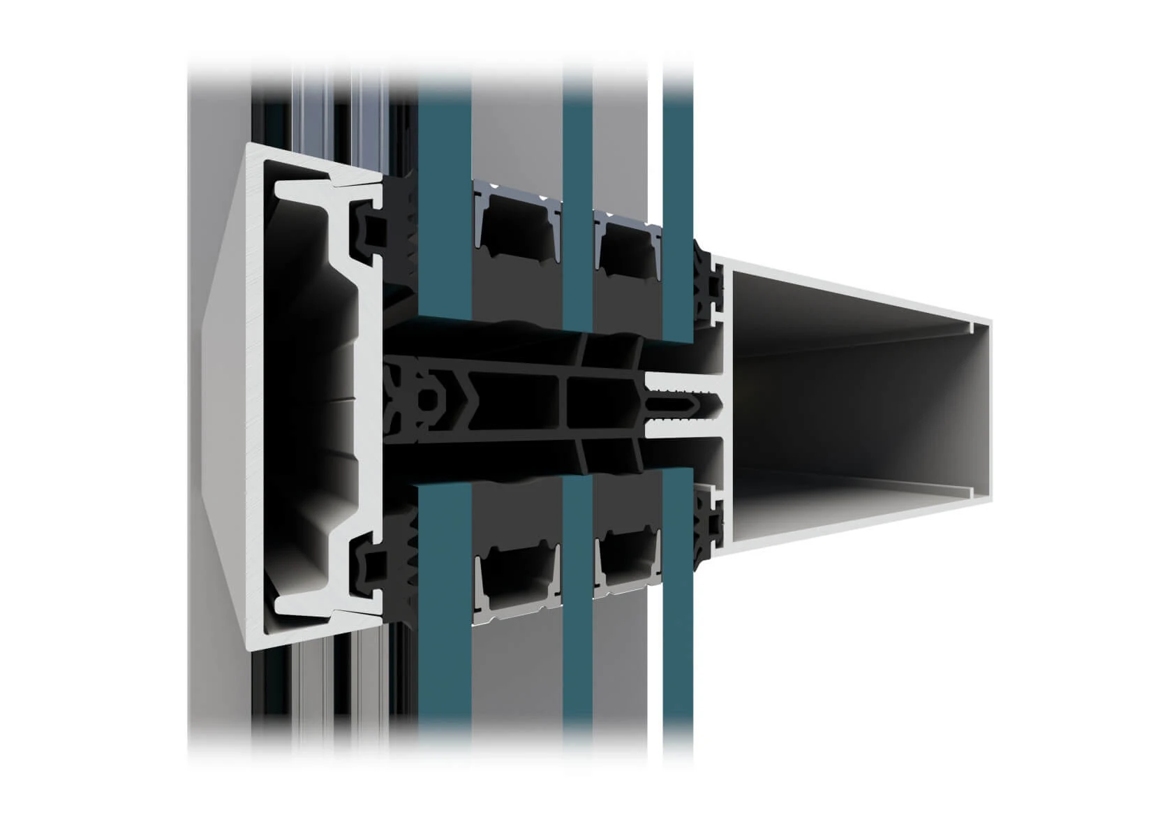 System ściany słupowo-ryglowej MB-MT50N to całkowicie nowa konstrukcja, zaprojektowana przez inżynierów ALUPROF w oparciu o wytyczne certyfikacji Cradle to Cradle, odpowiadając wymogom zrównoważonego rozwoju i idei gospodarki obiegu zamkniętego. Posiada szerokość konstrukcyjną 50 mm i zalety dotychczas funkcjonujących systemów słupowo-ryglowych ALUPROF, dodatkowo dając większe możliwości projektowe i lepsze parametry techniczne. Jest zoptymalizowany zarówno w zakresie kształtów oraz parametrów wytrzymałościowych profili, jak i pod względem akcesoriów, a zastosowane w nim rozwiązania ułatwiają montaż konstrukcji na budowie.