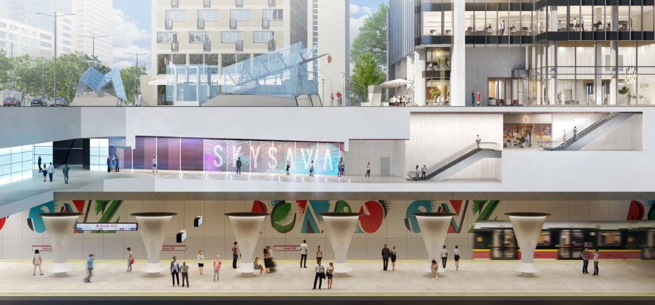 Niewątpliwym atutem inwestycji, oprócz jej doskonałej lokalizacji, będzie bezpośrednie połączenie budynku ze stacją drugiej linii metra – Rondo ONZ. SKYSAWA to jeden z pierwszych obiektów biurowych, w których zdecydowano się na takie rozwiązanie. Generalny wykonawca kompleksu, spółka PORR, rozpoczęła już prace przygotowawcze do budowy podziemnego korytarza łączącego poziom -2 budynku „A” SKYSAWA ze stacją metra.