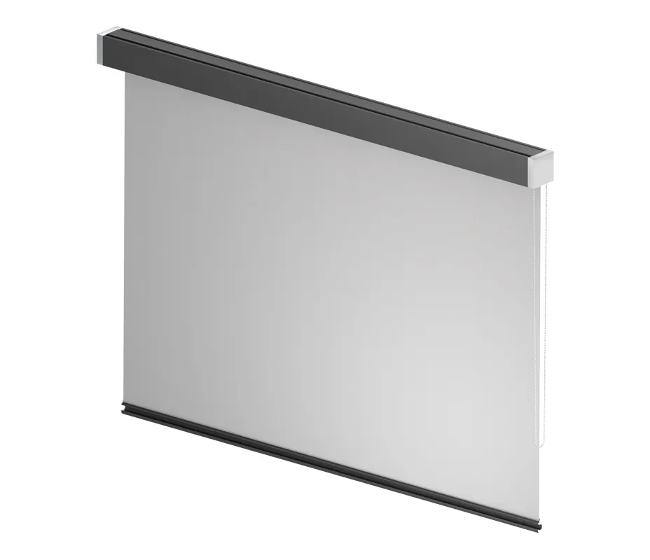 Le tissu du store est enroulé dans une cassette carrée, qui est également un élément qui maintient la toile au mur.