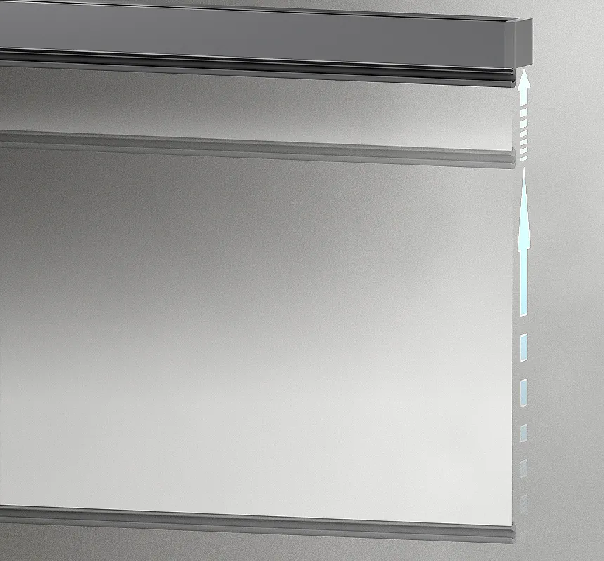 Dans la version MA, la toile est enroulée manuellement à l'aide d'une chaîne. Par contre, dans le modèle SA, la toile peut être enroulée et déroulée à l'aide d'une chaîne ou d'une barre de charge avec une fonction soft-stop qui ralentit lentement la toile avant que le store ne s'arrête en position haute et avant que le tissu ne soit entièrement enroulé. Cette solution garantit un fonctionnement silencieux du système.
