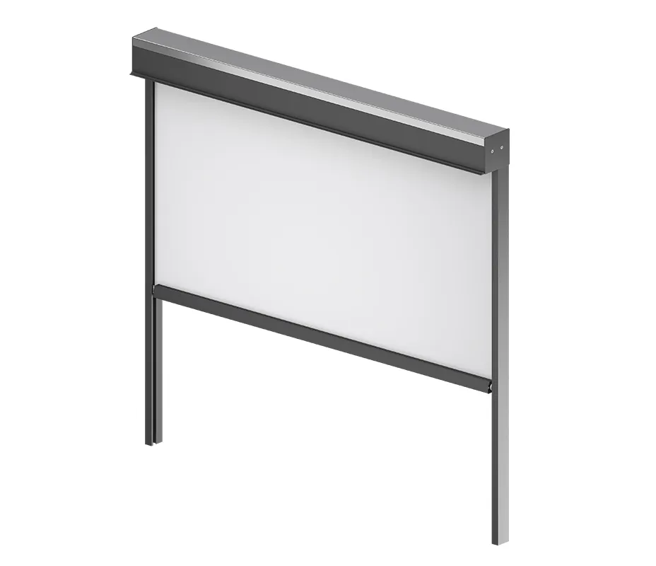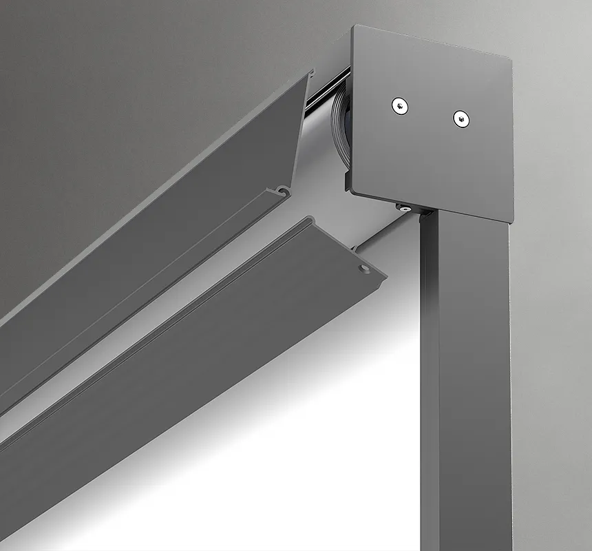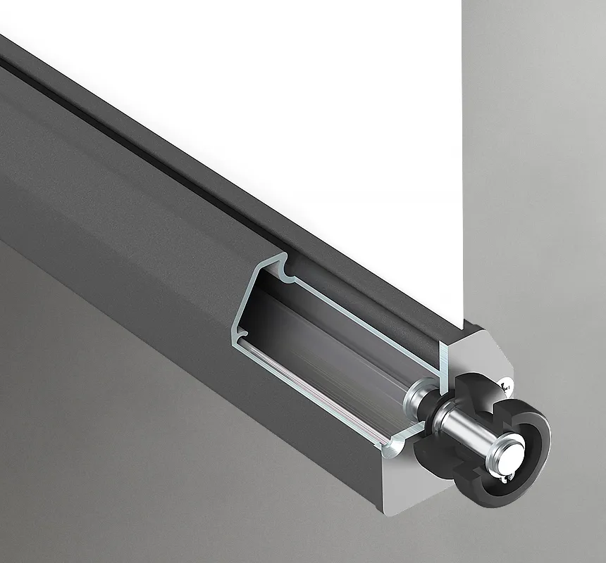 Installation box of the concealed system is hidden under the plastering which means that after the Refleksol is rolled up, only the guide rails are visible.