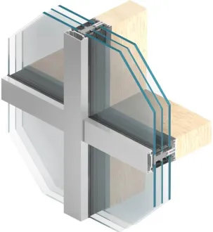 Mullion/transom curtain wall (overlay system applied on wood and steel)
