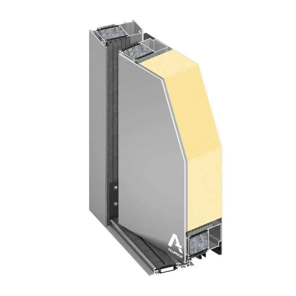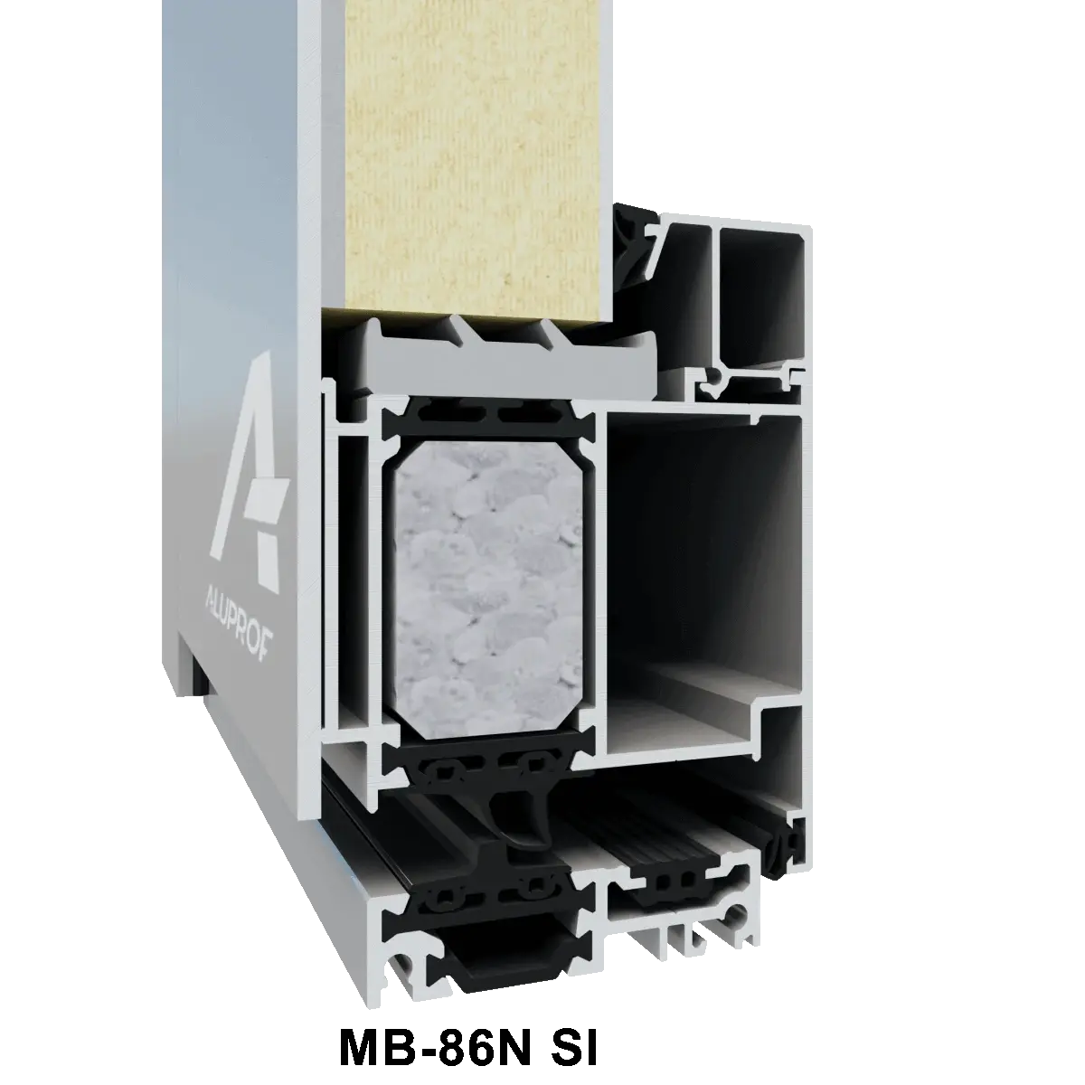 De constructie is gebaseerd op het systeem van thermisch geïsoleerde aluminiumprofielen MB-86 dat op dit moment het technologisch meest geavanceerde deursysteem is uit het aanbod van ALUPROF. Het vleugelprofiel is geschikt voor toepassing met speciale vullingen die gelijk liggen aan de oppervlakte van het deurframe. Ze kunnen enkelzijdig of dubbelzijdig worden gelijmd op de dragende profielen. De esthetische waarde van de deur wordt nog verhoogd door de mogelijkheid om verborgen scharnieren toe te passen.