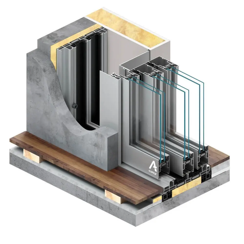 Het systeem MB-59 Slide Galandage is gebaseerd op oplossingen van het systeem MB-59 Slide en is bedoeld voor het vervaardigen van schuifdeuren met thermische isolatie, waarvan de deurvleugel tijdens het openen in de muur verdwijnt.