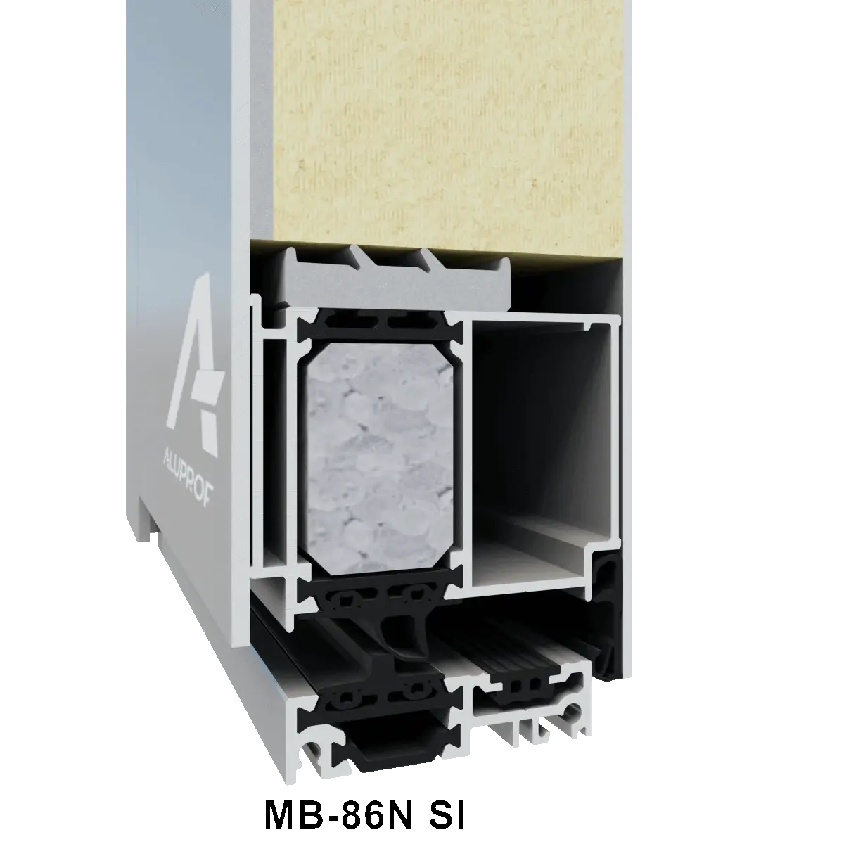 De constructie is gebaseerd op het systeem van thermisch geïsoleerde aluminiumprofielen MB-86 dat op dit moment het technologisch meest geavanceerde deursysteem is uit het aanbod van ALUPROF. Het vleugelprofiel is geschikt voor toepassing met speciale vullingen die gelijk liggen aan de oppervlakte van het deurframe. Ze kunnen enkelzijdig of dubbelzijdig worden gelijmd op de dragende profielen. De esthetische waarde van de deur wordt nog verhoogd door de mogelijkheid om verborgen scharnieren toe te passen.