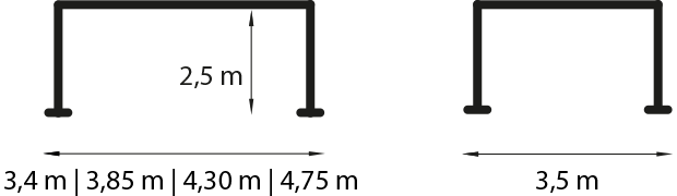 3,4 m, 3,85 m, 4,3 m, 4,75 m