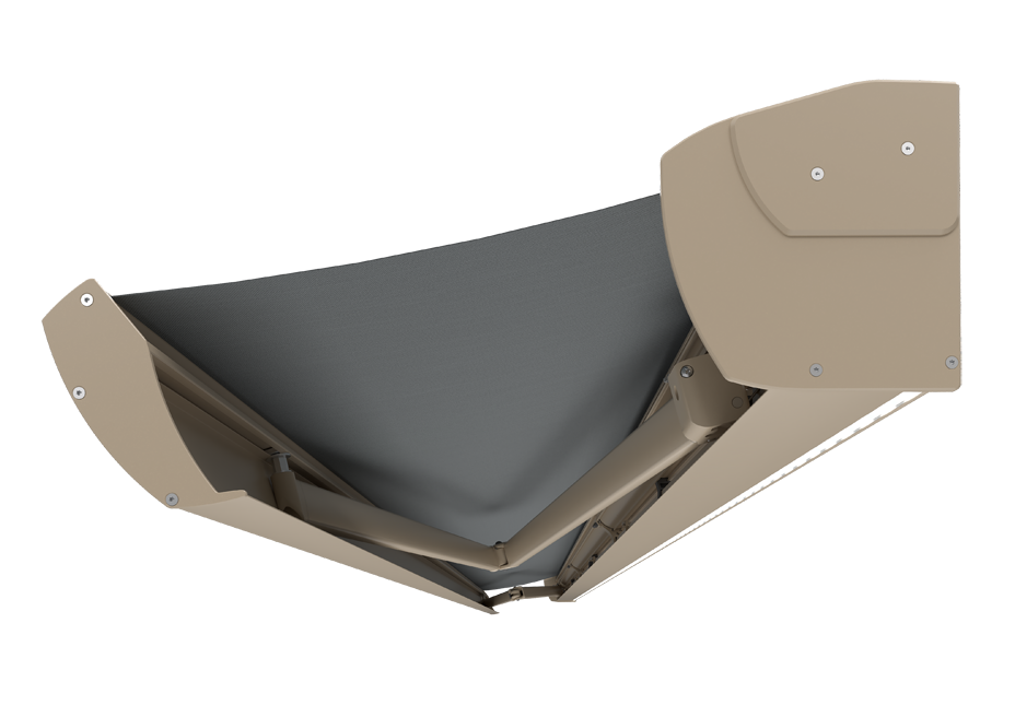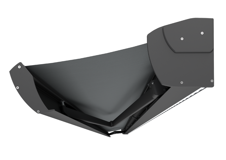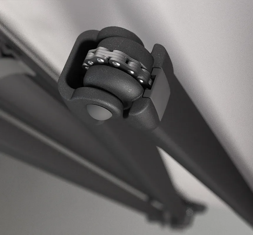Wytrzymałość rozkładanych ramion markizy jest dodatkowo wzmocniona systemem łańcuchów Flyera, co gwarantuje ich stabilną pracę nawet w przypadku szerokich markiz o dużych wysięgach.