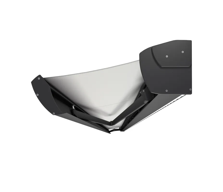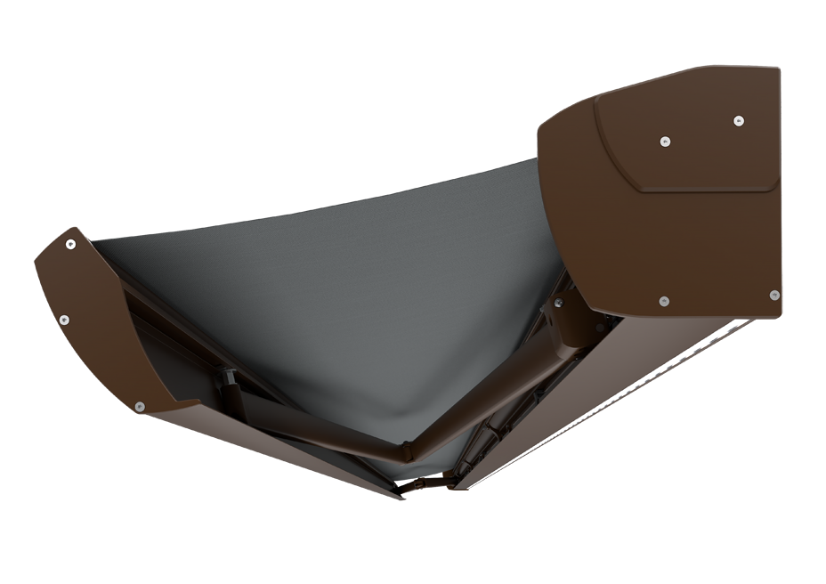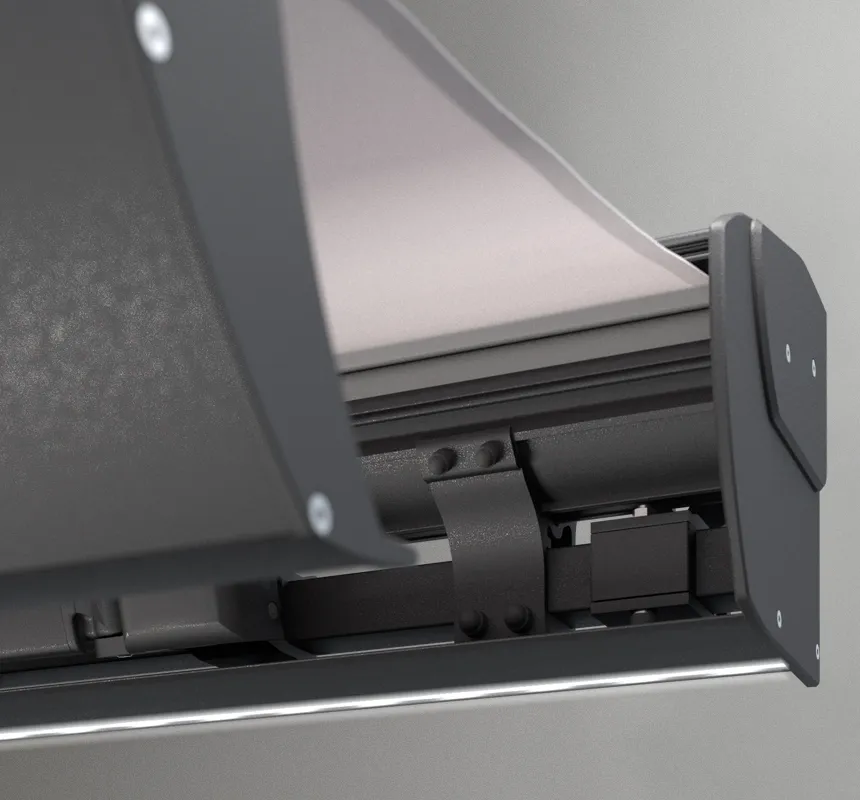 W ramionach zastosowano system łańcuchów Flyera, co gwarantuje ich niezawodną i bezpieczną pracę nawet przy dużych wymiarach markizy.