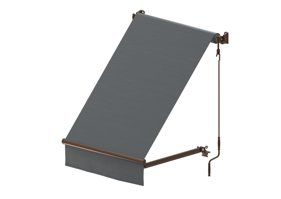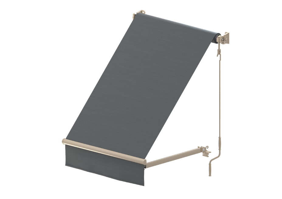 Są one połączone z przednią belką markizy za pomocą haków, a kąt nachylenia tkaniny zmienia się poprzez regulację położenia ramion. Naprężenie materiału ustawia się manualnie, dopasowując korbą stopień jego zwinięcia. Skośnie ułożona tkanina nie zamyka optycznie przestrzeni, jednocześnie zapewniając osłonę przed słońcem nie tylko samego balkonu, ale i pomieszczenia z nim sąsiadującego.