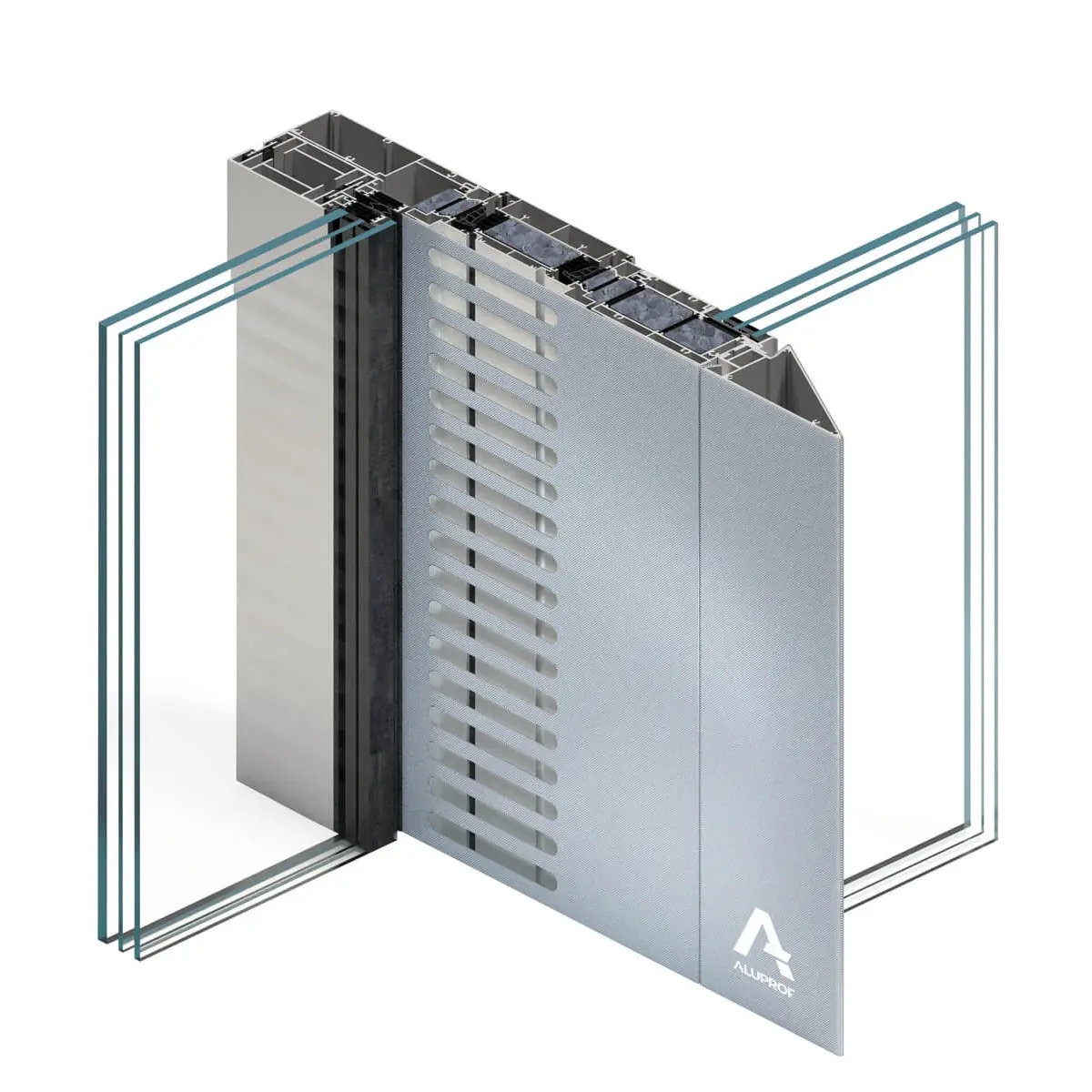 Konstrukcję ściany stanowią moduły, w całości wyprodukowane w zakładzie produkcyjnym. Wysokość modułów odpowiada wysokości kondygnacji, do której są montowane, a ich szerokość ustalana jest zgodnie z projektem architektonicznym. Dzięki odpowiedniemu zróżnicowaniu kształtów profili aluminiowych oraz technologii szklenia segmentów fasady możliwe było uzyskanie na poszczególnych elewacjach budynku różnorodnych efektów wizualnych, zgodnych z założeniami projektu. Uzupełnieniem systemu jest okno panelowe MB-86 SI MLT umożliwiające dopływ świeżego powietrza do pomieszczeń budynku.