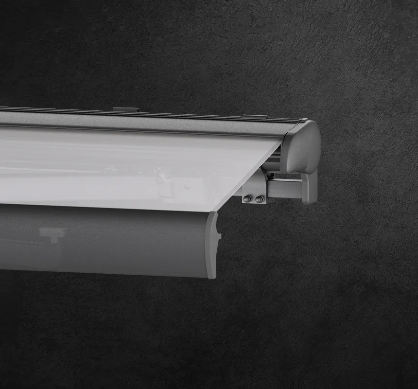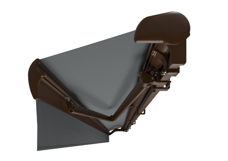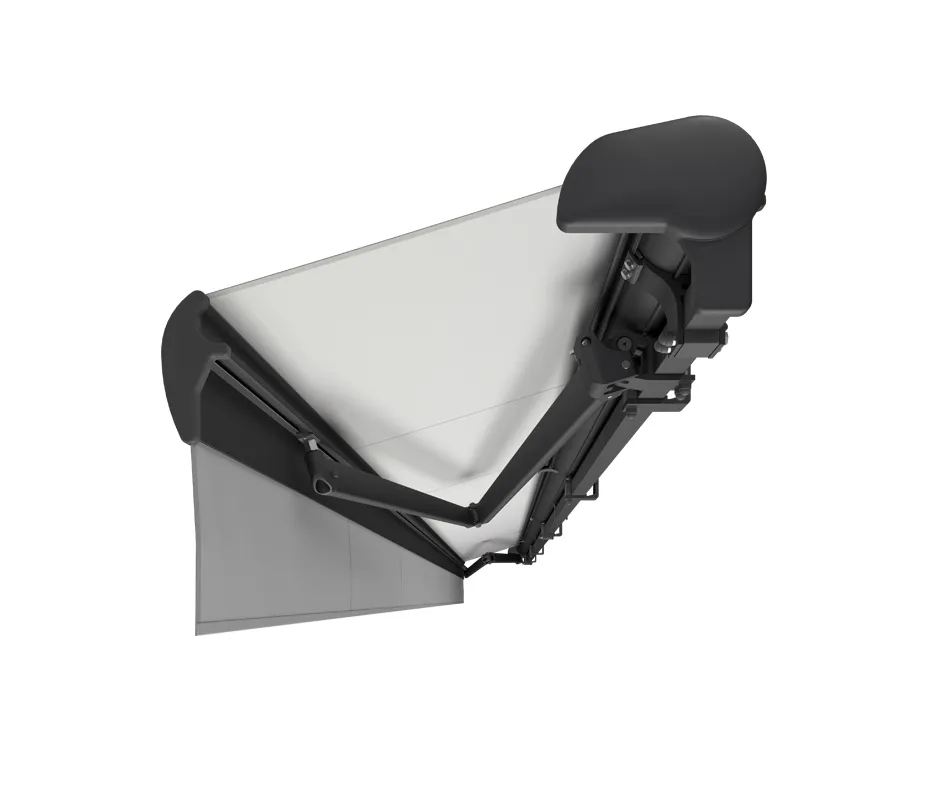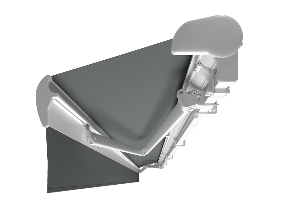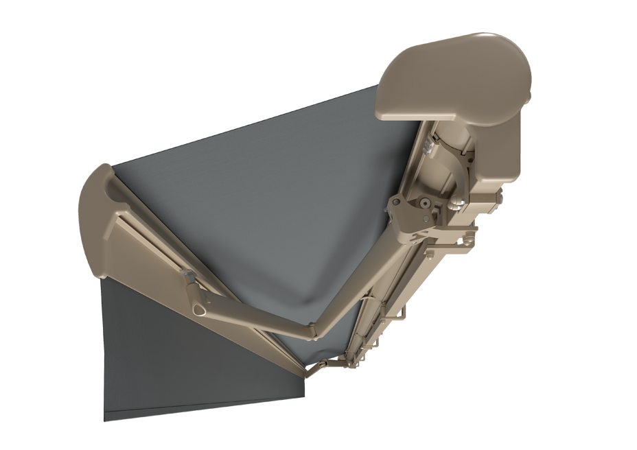 Wytrzymałość rozkładanych ramion markizy jest dodatkowo wzmocniona systemem łańcuchów Flyera, co gwarantuje ich stabilną pracę nawet w przypadku szerokich markiz o dużych wysięgach.
