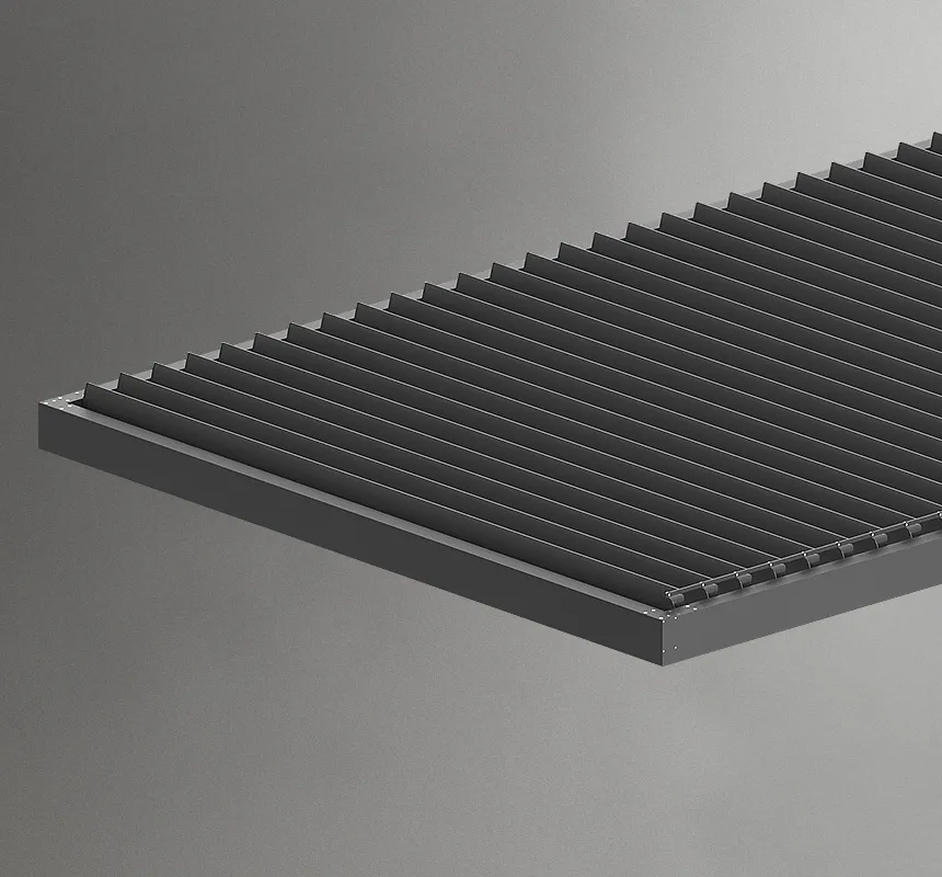 Dzięki wyeliminowaniu słupów montaż belek obwodowych przebiega błyskawicznie. Rynny są fabrycznie dokręcone. Zaślepki na zakończeniach belek zapewniają dostęp do wnętrza w dowolnym narożu i możliwość ukrycia elementów sterowania.