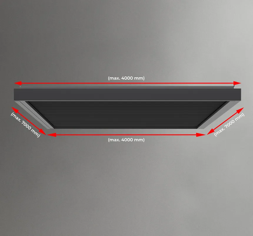System pergoli SB400R umożliwia tworzenie konstrukcji o szerokości modułu do 4 m i wysięgu do 7 m.