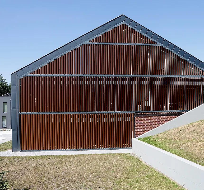 System Sunbreaker poza funkcją przeciwsłoneczną stanowi ciekawy element dekoracyjny fasady budynku. Świetnie sprawdza się podczas modernizacji istniejących budowli, dodając ich formom nowoczesnego wyglądu.