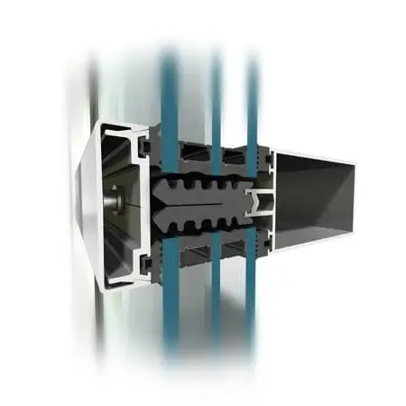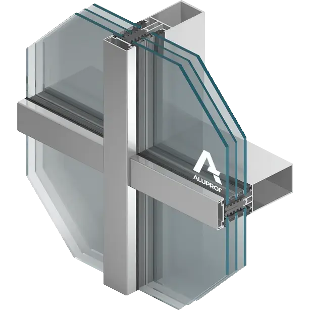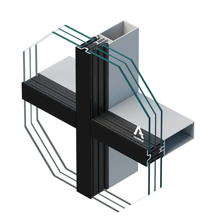 montanți și traverse cu margini “ascuțite” care permit la construirea structurilor portante ale fațadelor având aspect de grilă uniformă, elemente de îmbinare unghiulare care permit la formarea liberă a structurii din aluminiu