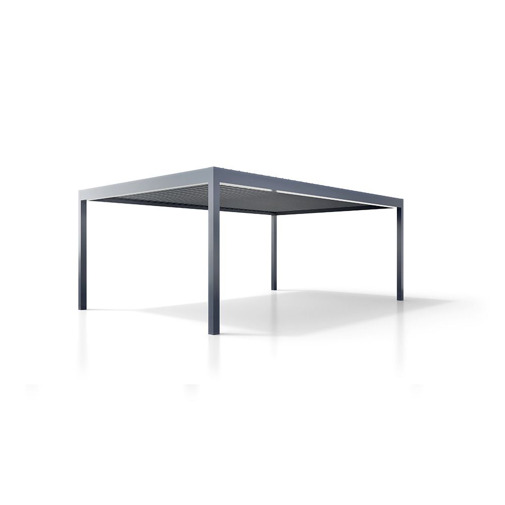Конструкция системы MB-OpenSky 140 изготовлена из экструдированного алюминия, что гарантирует ее прочность и устойчивость на протяжении долгих лет эксплуатации. Столбы перголы характеризуются большой прочностью, а их геометрия придает всей конструкции исключительную жесткость. Профили столбов и прогонов соединяются в узлах соединительными элементами типа C и L. Применение инновационного метода подгонки профилей при помощи специальных стержней позволило, с одной стороны, обеспечить стабильность всей системы, с другой – выполнить эстетичное соединение без заметных щелей. Крышей перголы служит модуль, сделанный из подвижных ламелей, оснащенных механизмом регулировки угла наклона в диапазоне от 0 до 135°.Ламели имеют специальные уплотняющие прокладки, которые защищают от осадков, а дренажная система в столбах позволяет эффективно отводить воду в ливневую канализацию при помощи водосточных желобов и труб.