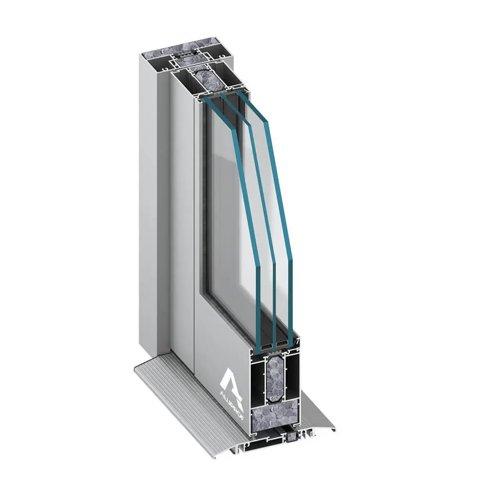 The new, thermally broken Ground Floor Treatment system from Aluprof is mainly used for entrances on the ground floor, wherever enhanced thermal insulation and mechanical durability is required. The MB-100GFT will be appreciated by anyone looking for a door & shopfront system with a robust construction that is resistant to repeated and intensive use. The Ground Floor Treatment system is designed for fabricating single and double doors as well as a shopfront system. The key advantages of the system include class leading thermal insulation, simplicity of fabrication, clean aesthetics and safety in use. The MB-100GFT doors feature as standard a low-level Part M compliant threshold, a concealed transom closer and an anti finger trap profile option for the hinge side. Doors can be inward, outward or dual action for operating intention. The system is available in two thermal variants which differ in terms of their performance; the basic ST variant and the SI variant which includes enhanced insulation, this is achieved with the inclusion of enhanced thermal inserts. Furthermore the modular construction fabrication process is quick and simple, reducing lead times for delivery and installation.